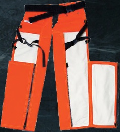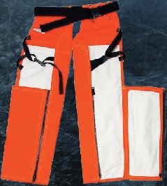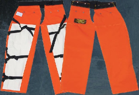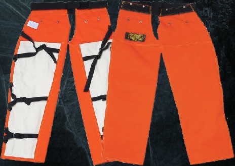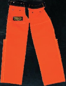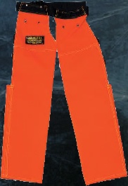 Rugged yet comfortable apron-style 3600/4100 chaps are made of 600 denier polyester highly visible orange nylon with polyurethane backing. Chaps are easy to buckle on and can be adjusted to fit a variety of sizes. Kevlar Protective Pads are 28" long and 4" on the left of both legs. Has 3 sets of 1" strap c/w 1" buckles on each leg. And 2" waist strap belt c/w buckle. Adjustable straps are quick snap fasteners. Our chainsaw chaps are also available in fire retardant and BNQ standard.